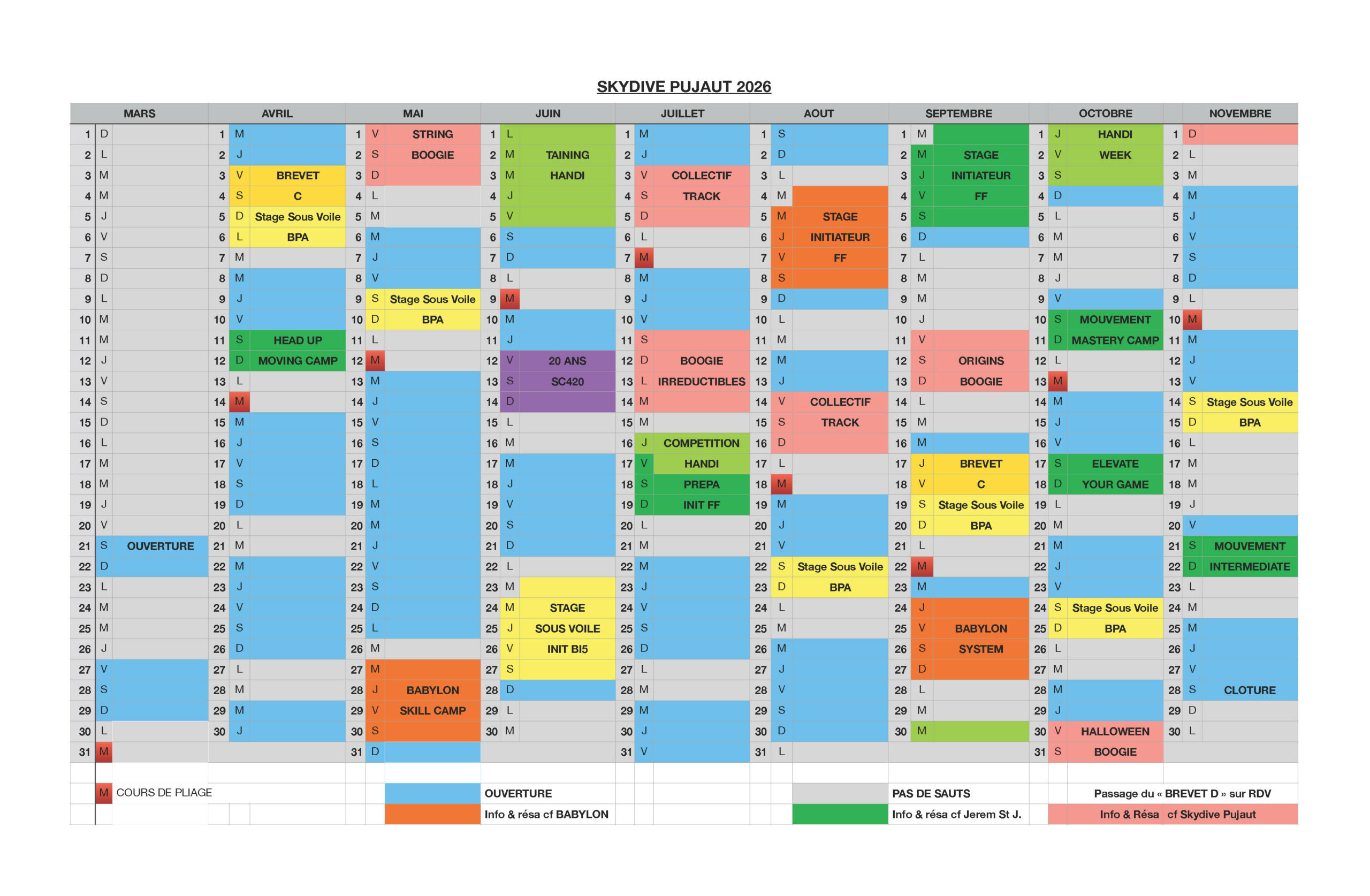 On vous a synthétisé les procédures avec ce document Skydive Pujaut.